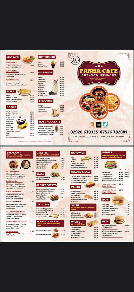 Welcome to Pasha Cafe, a hidden gem nestled in the heart of Cardiff at 136 Clare Rd, CF11 6RW. When you step through the doors of this inviting space, you're greeted by a warm atmosphere that feels both modern and cozy, making it the perfect spot for casual dining or a quick coffee break.